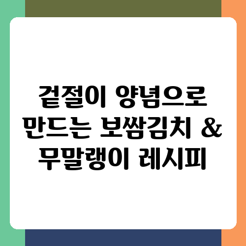 보쌈김치와 무말랭이 겉절이, 이젠 집에서 직접 만들어 맛보세요! 오늘 알려드린 레시피와 팁들을 활용하여 맛있는 무말랭이 겉절이를 만들어 보시고, 보쌈김치와 함께 즐거운 식탁을 완성해 보세요. 혹시 만들면서 궁금한 점이 있으면 언제든지 댓글로 질문해 주세요. 함께 맛있는 요리 이야기를 나누고 싶습니다!