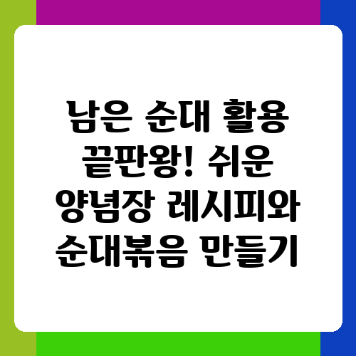 남은 순대 처리에 고민이신가요? 저도 똑같은 경험을 많이 했답니다. 순대 몇 개만 남아도 버리기 아깝고, 그렇다고 뭘 해 먹어야 할지 막막하더라고요. 그래서 오늘은 남은 순대를 활용해 맛있게 볶아 먹는 순대볶음 레시피와 양념장 만드는 방법을 자세하게 알려드리려고 해요. 간단한 재료와 쉬운 과정으로 누구나 뚝딱 만들 수 있으니, 오늘 저녁 메뉴는 순대볶음으로 정해보세요!