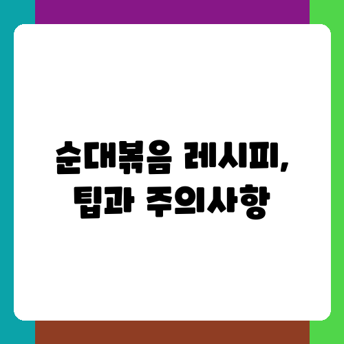 순대볶음을 만들 때 주의해야 할 점이 몇 가지 있습니다. 먼저 순대를 너무 오래 볶으면 딱딱해질 수 있으니, 중불에서 적당히 볶는 것이 중요해요. 그리고 양념장의 양을 조절해서 순대에 잘 배도록 하는 것이 포인트입니다. 양념이 너무 많으면 짜질 수 있고, 너무 적으면 싱거울 수 있으니 취향에 맞게 조절하세요. 또한, 순대볶음은 만들자마자 바로 먹는 것이 가장 맛있지만, 남은 경우에는 냉장 보관 후 데워 먹어도 괜찮습니다. 전자레인지보다는 프라이팬에 살짝 볶아서 먹으면 더욱 맛있답니다.