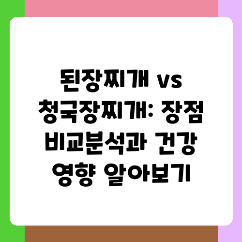 된장찌개와 청국장찌개는 한국인이라면 누구나 익숙한 대표적인 찌개입니다. 하지만 둘 다 된장을 기본으로 하지만 맛과 향, 그리고 재료에서 미묘한 차이가 있어요. 오늘은 된장찌개와 청국장찌개의 차이점을 꼼꼼히 비교 분석하여 여러분이 더욱 풍성한 찌개의 세계를 즐길 수 있도록 도와드리겠습니다. 두 찌개의 매력에 푹 빠져보세요!