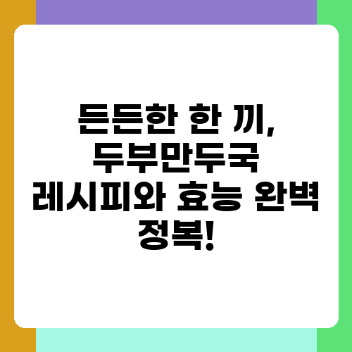 바쁜 일상 속에서 든든한 한 끼를 해결하고 싶은데, 마땅히 뭘 먹어야 할지 고민이신가요? 오늘은 재료도 간단하고, 만들기도 쉬우면서 영양까지 풍부한 두부만두국 레시피를 소개해 드릴게요. 따뜻한 국물이 생각나는 날, 혹은 몸이 허할 때 간편하게 만들어 드실 수 있답니다. 저도 처음 만들어 봤을 때, 그 맛에 반해 자주 만들어 먹는 메뉴 중 하나에요! 함께 만들어 보시죠.
