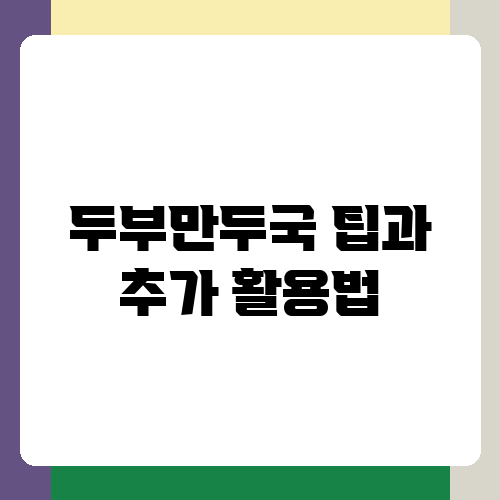 두부만두국을 더욱 맛있게 먹는 팁을 알려드릴게요. 먼저, 두부는 너무 얇게 썰지 않도록 주의해야 합니다. 두부가 너무 얇으면 끓는 과정에서 쉽게 으깨질 수 있으므로, 적당한 두께로 썰어야 합니다. 만두는 냉동 만두를 사용하는 경우, 미리 해동시켜 사용하면 더욱 좋습니다. 냉동 만두를 바로 넣으면 익는 시간이 오래 걸릴 수 있으므로, 미리 해동하는 것이 좋습니다. 또한, 다양한 채소를 추가해서 드셔보세요. 버섯이나 시금치 등 다양한 채소를 넣으면 영양가도 높아지고 맛도 더욱 풍부해집니다. 남은 두부만두국은 냉장 보관 후 다음날 다시 데워 드셔도 좋습니다. 남은 국물은 밥을 말아 먹어도 좋고, 김치와 함께 먹으면 더욱 맛있습니다. 다음에는 다른 재료를 활용하여 자신만의 레시피를 만들어 보세요! 오늘 저와 함께 만든 두부만두국, 맛있게 드셨으면 좋겠습니다.