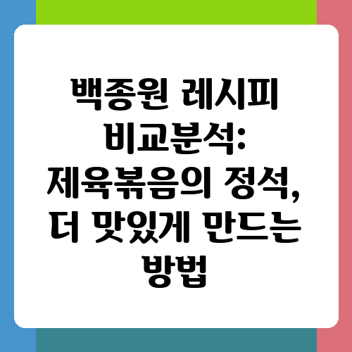 제육볶음 하면 떠오르는 건 바로 백종원 레시피죠. 매콤달콤한 양념에 볶아낸 돼지고기는 밥도둑이라는 말이 절로 나올 정도로 정말 맛있어요. 하지만 막상 따라 해 보면 뭔가 좀 아쉬운 점이 있더라고요. 그래서 오늘은 백종원 제육볶음 레시피를 기본으로 하면서, 더욱 맛있게 만드는 팁과 함께 제육볶음의 정석을 파헤쳐 보려고 합니다. 여러분도 쉽게 따라 할 수 있도록 자세히 설명해 드릴 테니, 기대하셔도 좋아요!