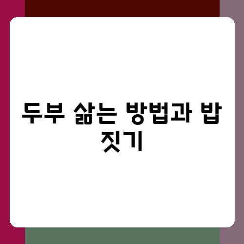 두부는 끓는 물에 살짝 데쳐서 사용하면 콩 비린내를 제거하고 더욱 부드러운 식감을 즐길 수 있어요. 저는 두부를 끓는 물에 3분 정도 데쳤는데, 너무 오래 삶으면 두부가 으깨질 수 있으니 주의하세요. 데친 두부는 찬물에 헹구어 물기를 제거해 주세요. 두부는 칼로 썰거나 숟가락으로 으깨서 사용하면 돼요. 저는 밥과 잘 어울리도록 큼직하게 썰어서 사용했습니다. 밥은 평소 밥을 짓는 방법과 같이 지으면 되고요. 밥이 다 되면 따뜻한 상태로 두부와 함께 그릇에 담아줍니다. 밥을 지을 때 찹쌀을 조금 섞으면 더욱 찰진 식감을 즐길 수 있어요. 하지만 찹쌀의 비율을 너무 높이면 밥이 너무 끈적일 수 있으니 적당량을 사용하는 것이 좋습니다.