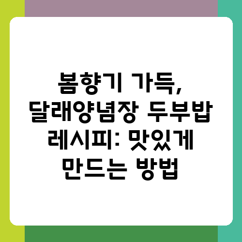 봄 향기 가득한 달래를 활용하여 맛있는 두부밥을 만들어보는 건 어떨까요? 싱싱한 달래의 향긋함과 부드러운 두부의 조화는 봄철 입맛을 돋우기에 충분하답니다. 오늘은 달래양념장을 직접 만들어 두부밥과 함께 즐기는 특별한 레시피를 소개해 드릴게요. 집에서 간편하게 만들 수 있으니, 함께 따라 해 보세요!