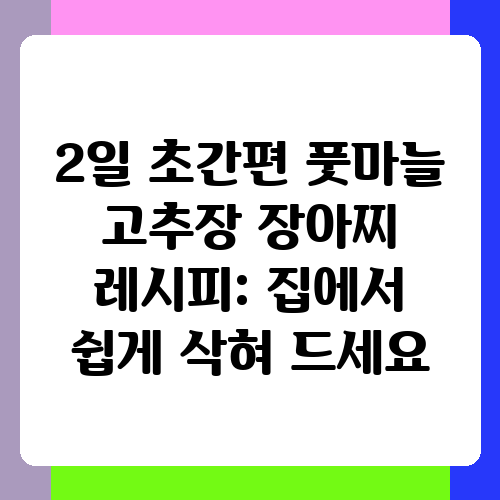 이제 2일 만에 간편하게 완성하는 풋마늘 고추장 장아찌 레시피를 모두 알려드렸습니다. 레시피대로 따라 하면 누구든 쉽게 만들 수 있으니, 주말에 시간을 내어 맛있는 풋마늘 고추장 장아찌를 만들어 보세요! 가족들과 함께 맛있는 식탁을 만들고, 남은 장아찌는 밀폐용기에 담아 냉장 보관하면 됩니다. 혹시 레시피에 대한 질문이나 추가적인 정보가 필요하시면 언제든지 댓글 남겨주세요. 여러분의 성공적인 풋마늘 고추장 장아찌 만들기를 응원합니다!